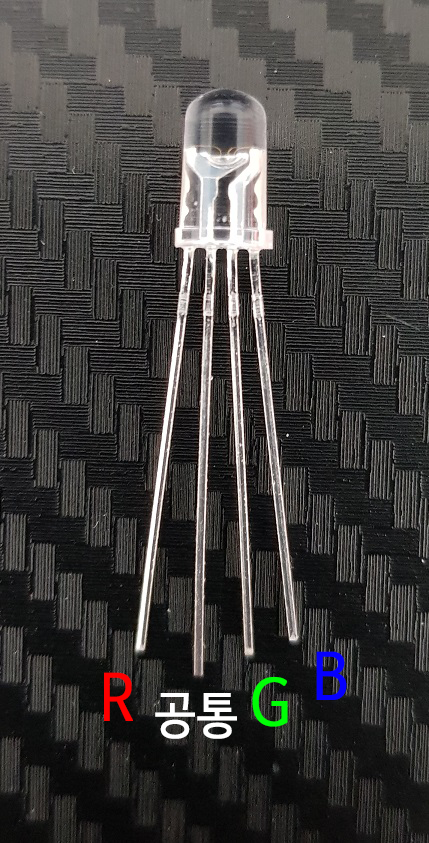4개의 핀으로 이루어져 있으며, 순서대로 R, 공통, G, B 순으로 되어 있습니다.