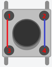 푸시버튼은 버튼을 누르는 동안 HIGH 값을 가지며 뗄 때 LOW 값을 갖습니다. 푸시버튼은 일반적으로 네 개의 단자(Terminal)로 구성되며 두 단자간 서로 연결되어 있습니다. 따라서 하나의 단자가 끊어지거나 고장이 나더라도 다른 단자로 충분히 동작 가능합니다.