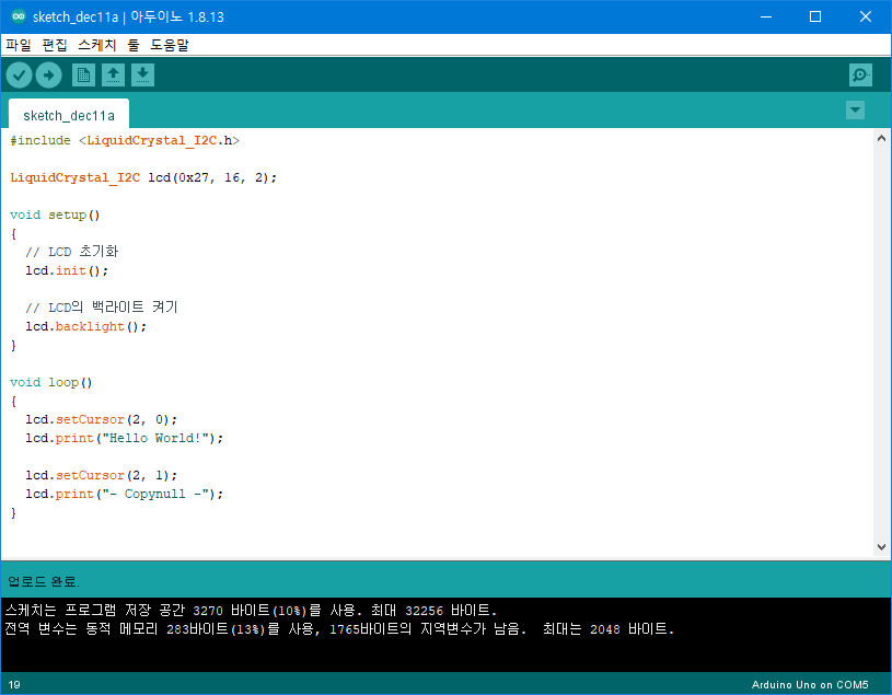 LCD 디스플레이 모듈을 활용해서 글씨를 출력하는 것을 구현하도록 하겠습니다.