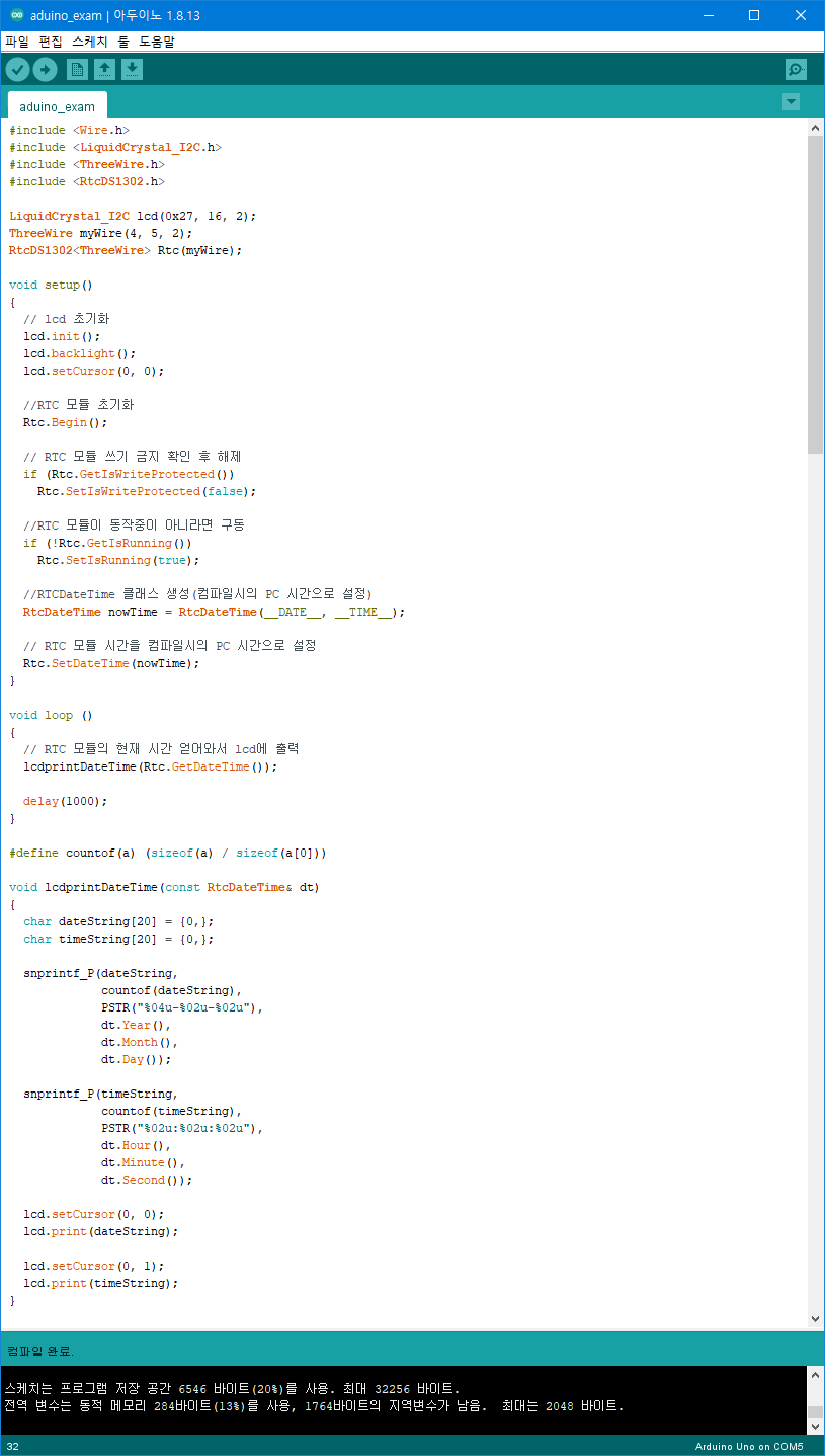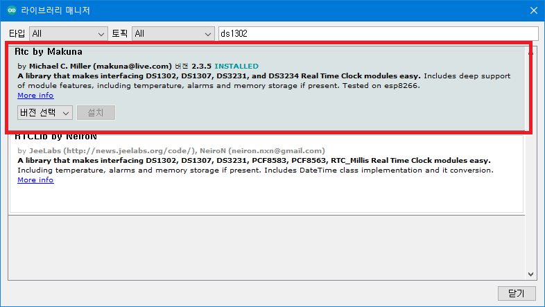 RTC 모듈을 사용하기 위해서 아래 라이브러리를 설치 및 추가하여야 한다.
