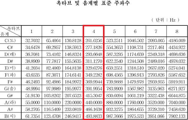 음계에도 진동수에 따른 표현이 가능합니다. 아래와 같이