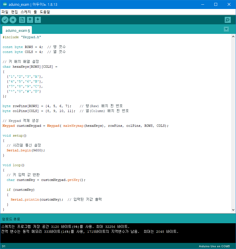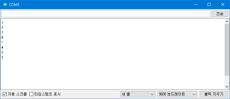 간단히 키패드를 입력하면 입력한 값을 시리얼모니터로 출력하는 기능을 구현합니다.