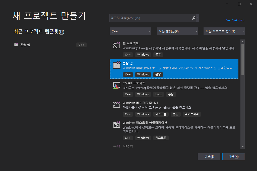 자 그럼 visual studio 를 열고 콘솔 프로젝트를 하나 생성합니다.