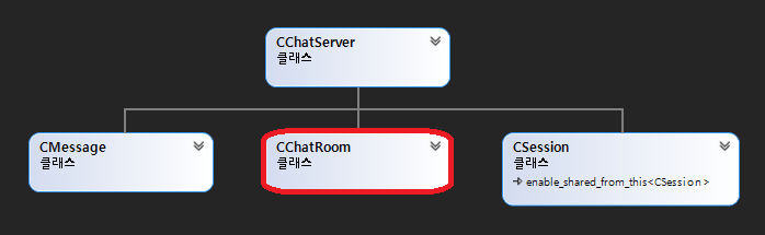 채팅방 클래스는 생각보다 단순하여 인라인으로 구성합니다. 방에 들어온 유저 세션을 set 컨테이너에서 관리하며 접속된 유저들에게 데이터를 보낼 수 있는 write 함수로 간단히 구성됩니다.