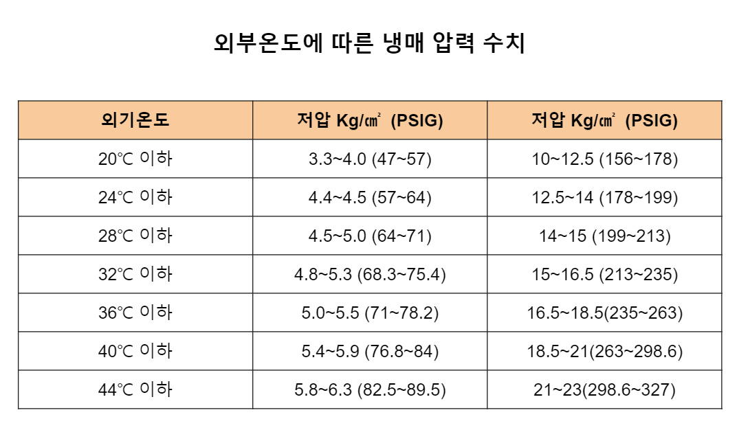 [에어컨] 외부온도에 따른 냉매 압력수치 R-22