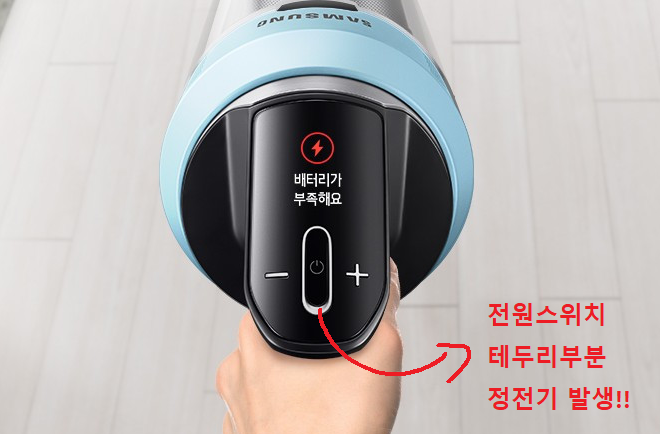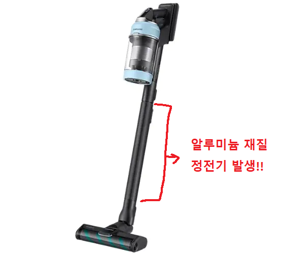 삼성 비스포크 제트 청소기의 정전기가 발생되는 위치는 2군데 입니다.