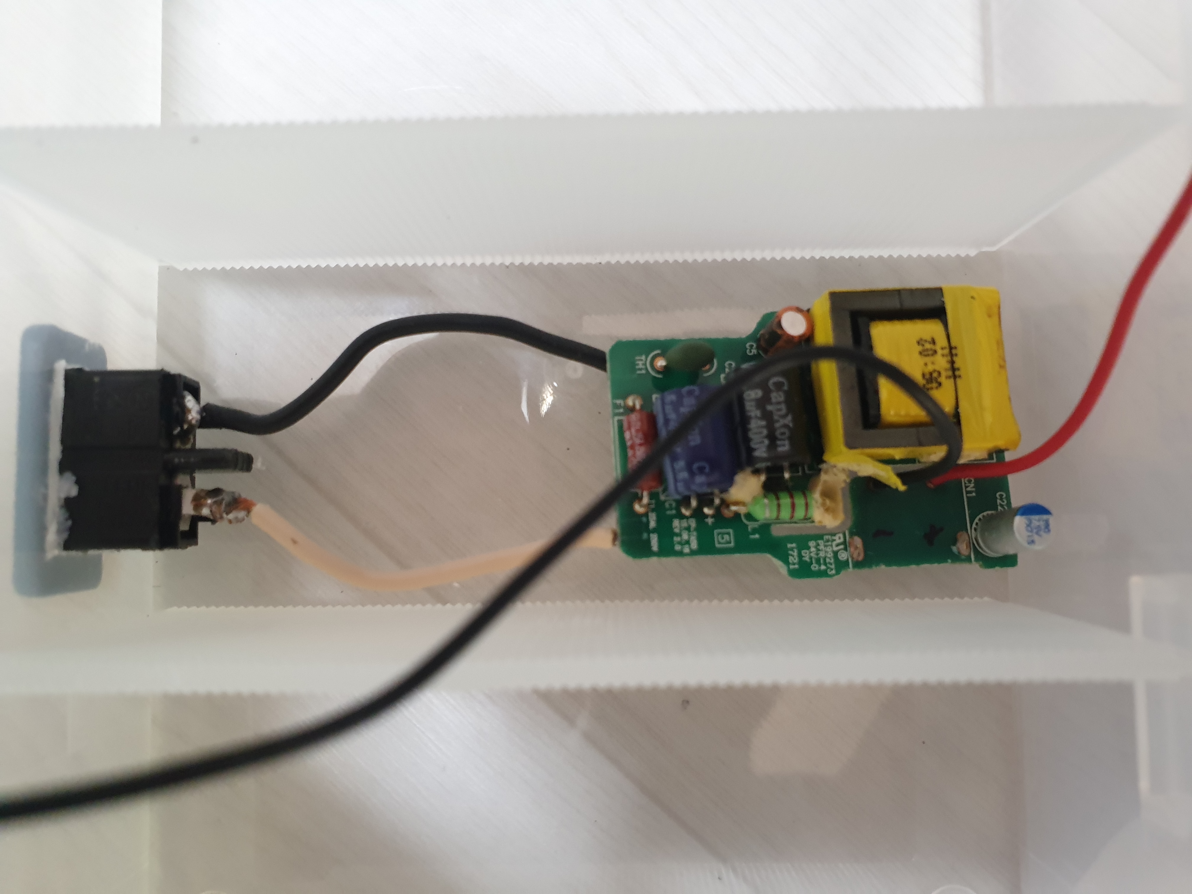 어뎁터를 분해하고 USB 소켓을 제거하면 아래와 같이 회로를 구성할 수 있습니다.