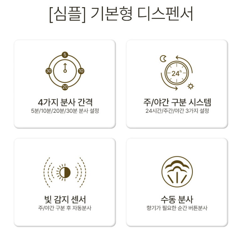 기본적인 제품의 기능은 아래와 같이 분사간격 시간에 따른 자동 분사 기능밖에 존재하지 않았습니다.