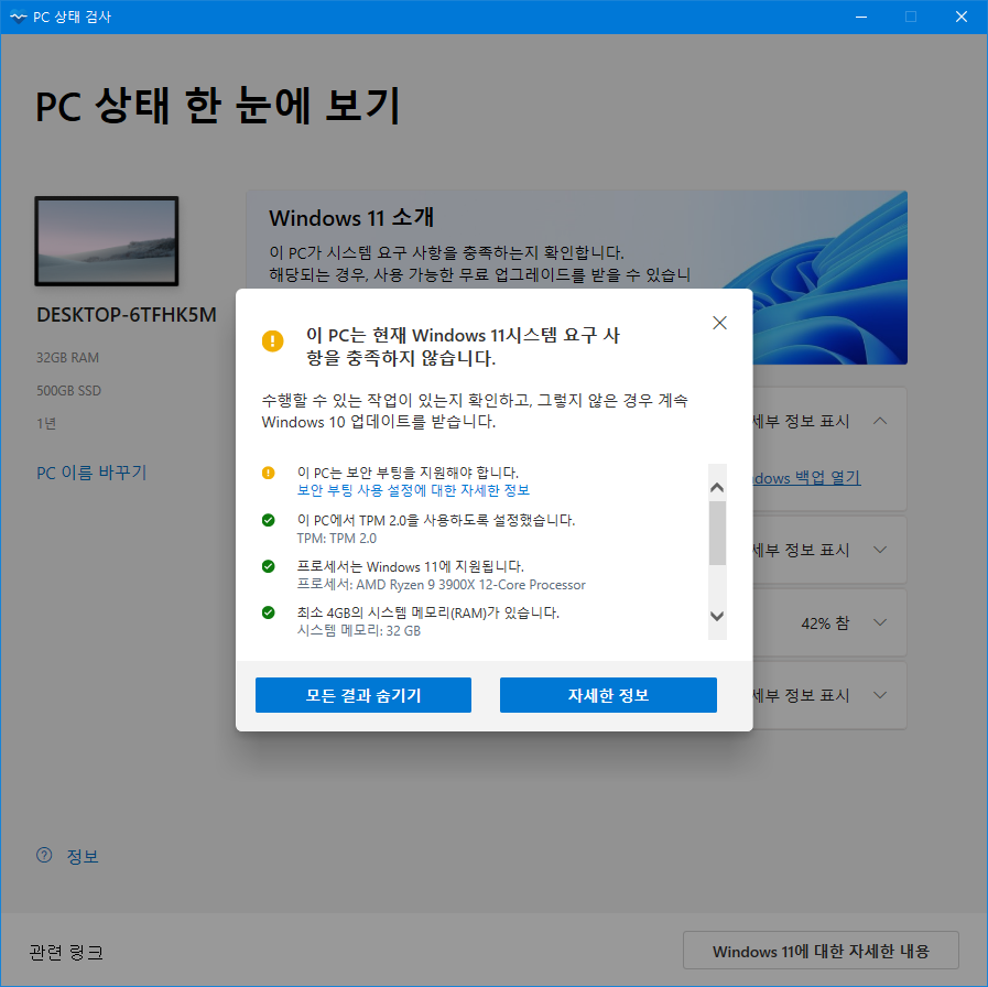 윈도우 11로 업데이이트를 하기 전에 내 PC가 윈도우11이 설치가 가능한건지 하드웨어 사양을 알아보는 방법에 대해서 기술합니다.