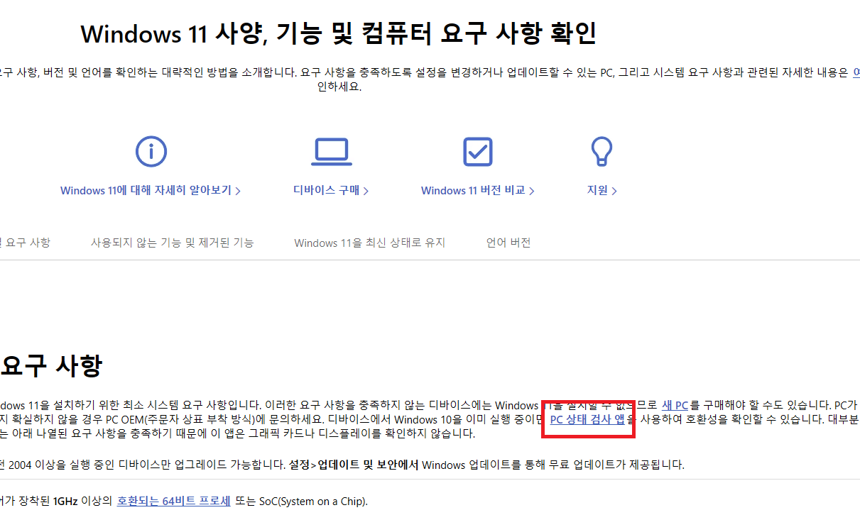 https://www.microsoft.com/ko-kr/windows/windows-11#pchealthcheck